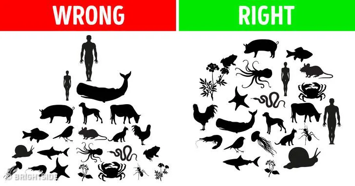 Група френски изследователи успя да пресметне точно къде се класират хората в прототипната хранителна мрежа. Въз основа на хранителното поведение на хората те не са по-високи от прасета. За да бъде на върха, едно животно трябва да консумира само месото на други хищници, което определено не е така при хората, които консумират смес от растения и меса.