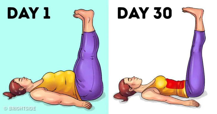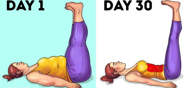 Повдигане на краката. Легнете на гърба си и сложите ръце на пода за баланс. Бавно повдигнете краката си 10-15 пъти. Ще започнете да забележите прогрес само за 30 дни.