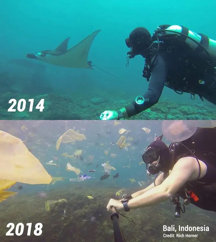 Както можете да видите, разликата между снимките е само 4 години и това прави цялото нещо дори по-страшно. Вторият кадър бе направен от Rich Horner, който реши да се наслади на деня на гмуркането в Manta Point.