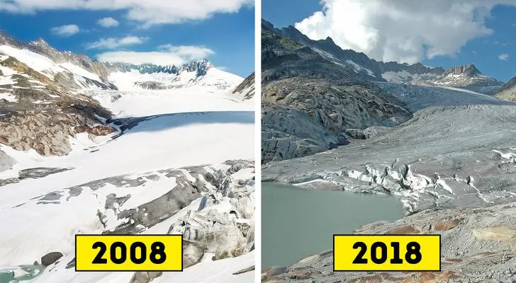 През последните 10 години ледникът Rhône бързо се топи. От 2008 г. насам той се е свила със 131 фута (40 метра). За да го спаси, швейцарското правителство реши да започне да покрива района с устойчиви на UV бели одеяла. Експертите смятат, че това ще спомогне за намаляване на леденото топене на леда до 70%.