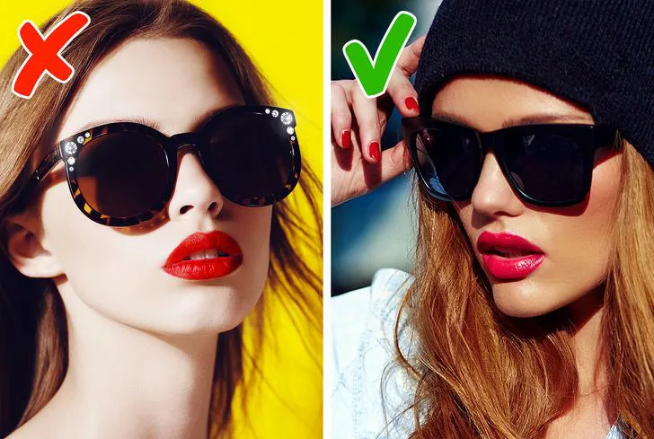 Избирайте слънчеви очила с нестандартна или класическа форма без никакви камъни по тях. Тези „бижута“ могат да ви направят да изглеждате евтино. Когато избирате слънчеви очила, трябва да знаете типа на лицето си. Ако имате квадратна форма на лицето, изберете слънчеви очила тип пеперуда, тип овално лице ще изглежда страхотно с авиаторските слънчеви очила, а кръглото лице изглежда добре с всякаква форма.